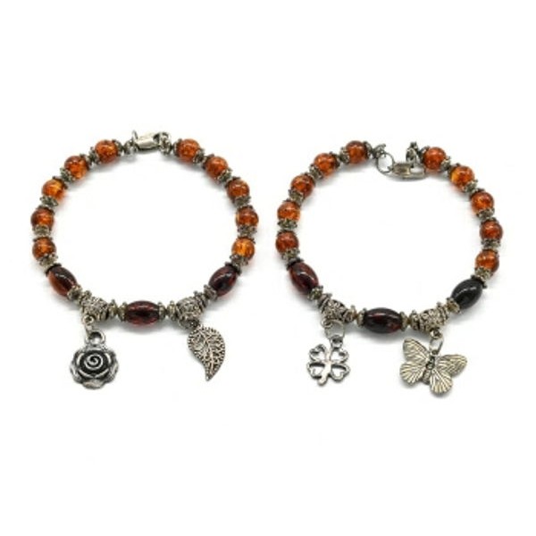 Браслет из янтаря с Кулонами цвет коньячный, кофейный, 17см.