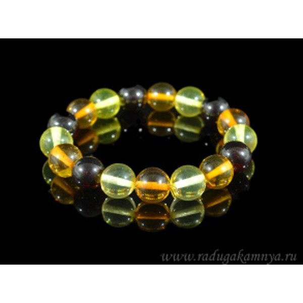 Браслет из янтаря шарик 12мм лимонный, св.коньячный, вишня