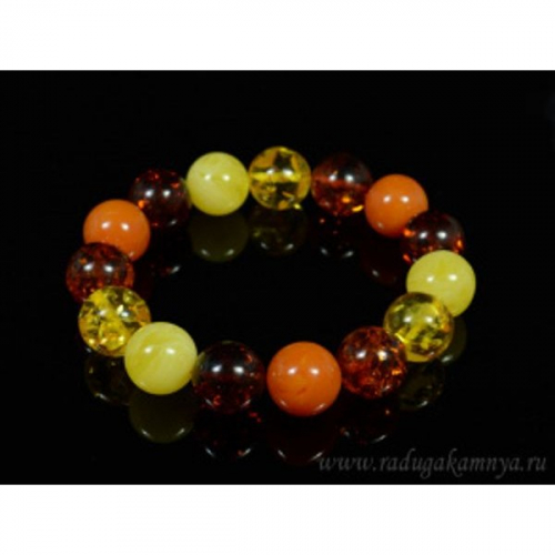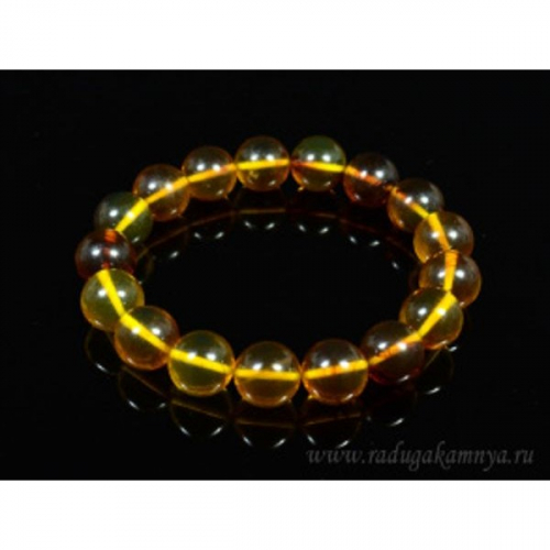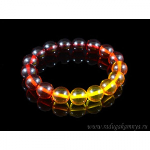 Браслет из янтаря шарик 12мм радуга лимонно-вишневый