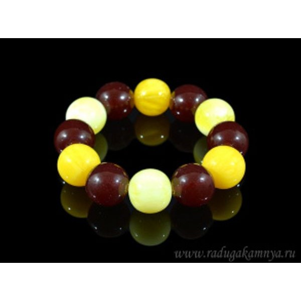 Браслет из янтаря шарик 16мм молочный, медово-молочный, вишня