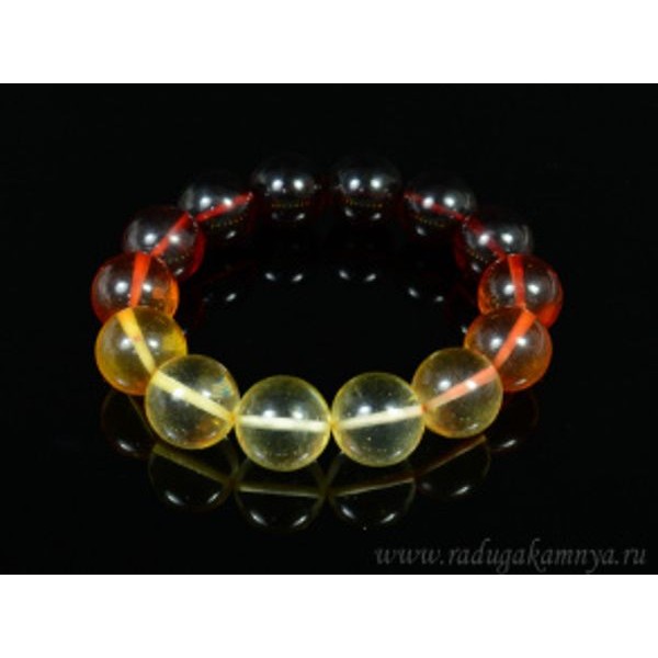 Браслет из янтаря шарик 16мм радуга лимонно-вишневый