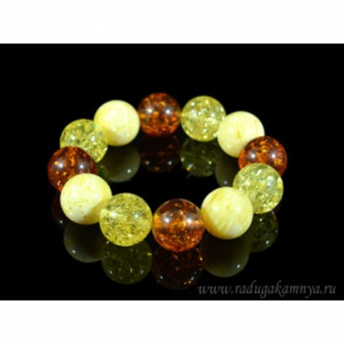 Браслет из янтаря шарик 18мм лимонный, молочно-медовый, коньячный