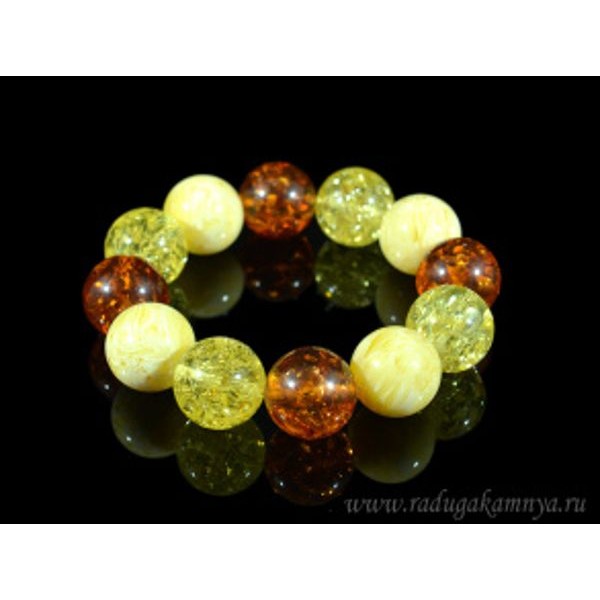 Браслет из янтаря шарик 18мм лимонный, молочный, коньячный