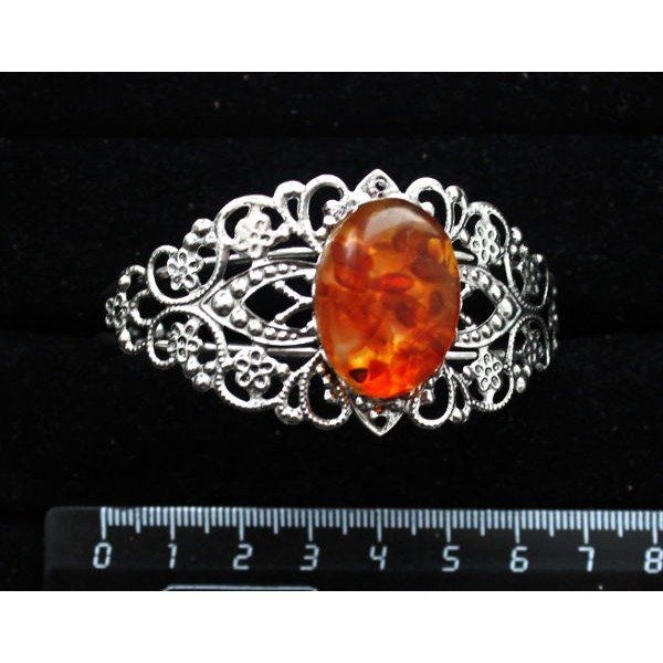 Браслет из янтаря светлого, кабошон-мозаика, овал 25х18мм, жесткая основа, цвет ант.серебро
