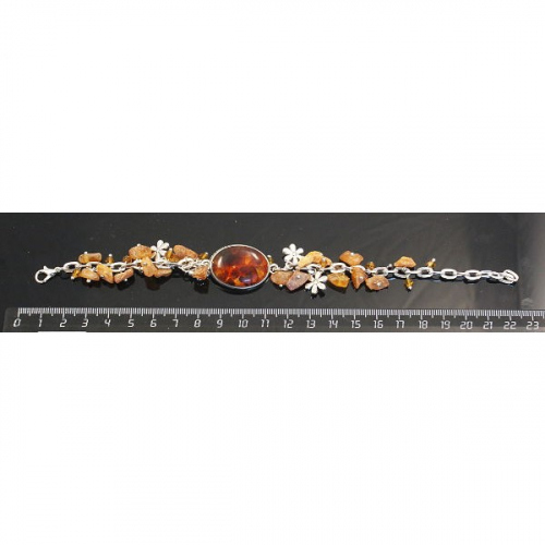 Браслет из янтаря темный, (кабошон-мозаика), овал 25х18мм, жесткая основа, цвет ант.серебро