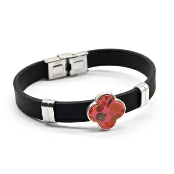Браслет клевер с янтарем мозаика 18*18мм цвет розовый, 21см