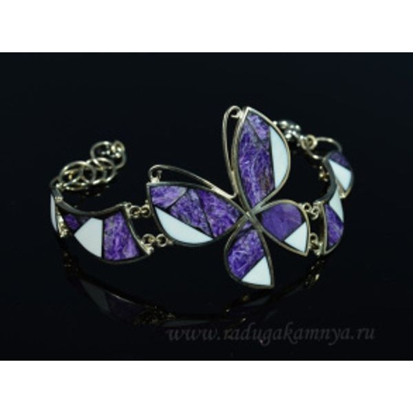 Браслет мозаика "Бабочка" из чароита и кахолонга, 21см.