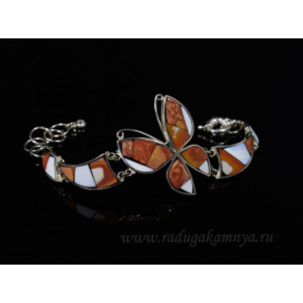 Браслет мозаика "Бабочка" из яшмы и кахолонга, 17-22см.
