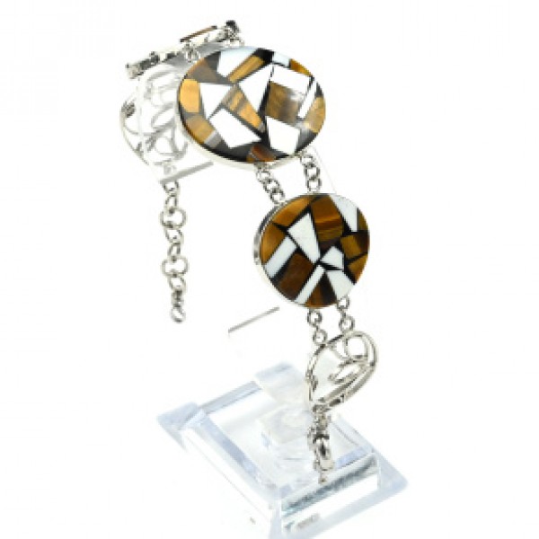 Браслет "Мозаика" из тигрового глаза и кахолонга, 18,5см.