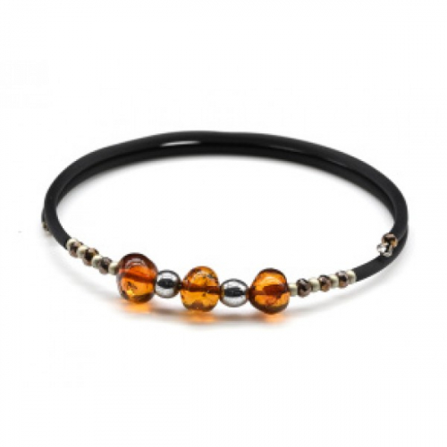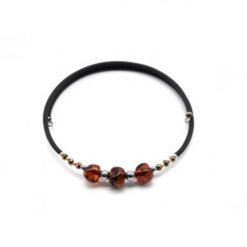 Браслет на струне со вставками из янтаря галтовка 8мм цвет коньячный, 17см.
