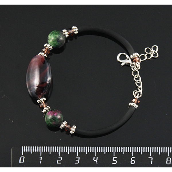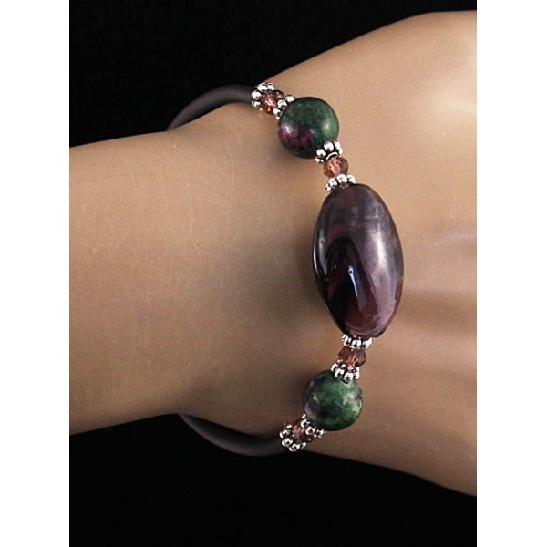 Браслет на струнке из цоизита и фиолетового муранского стекла