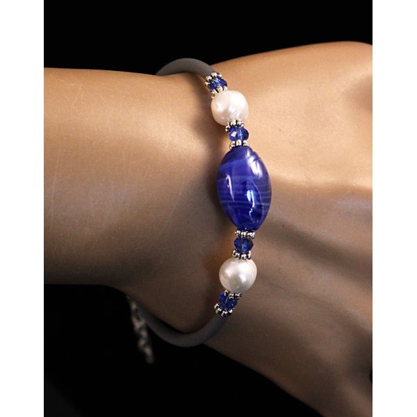 Браслет на струнке из каулита и синего муранского стекла