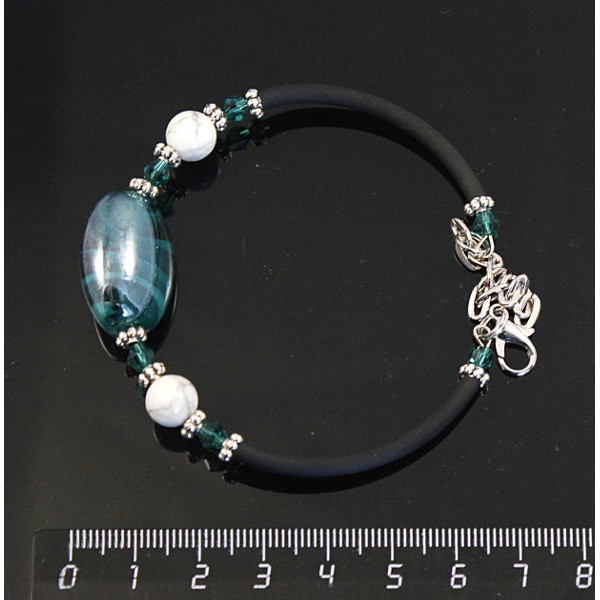 Браслет на струнке из каулита и зеленого муранского стекла