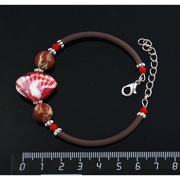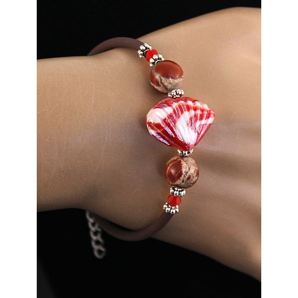 Браслет на струнке "ракушка" из яшмы красной и муранского стекла