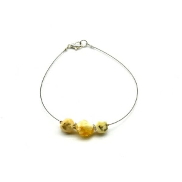 Браслет на ювелирном тросике с янтарем 3 Шарика с гранями цвет молочный, 18см