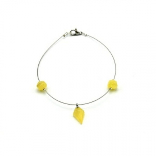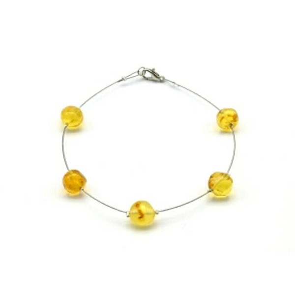 Браслет на ювелирном тросике с янтарем 5 Шаров цвет медовый, 20см