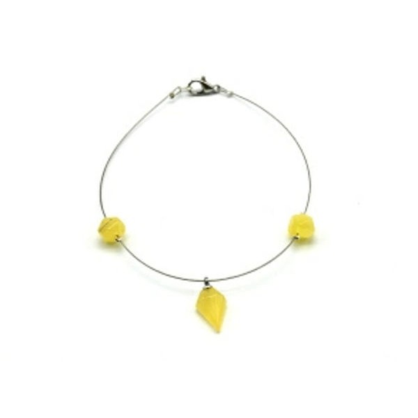 Браслет на ювелирном тросике с янтарем Кристалл с гранями цвет молочный, 17см