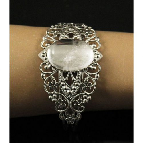 Браслет с горным хрусталем, + янтарь необраб. галтовка, овал 25х18мм, на цепочке