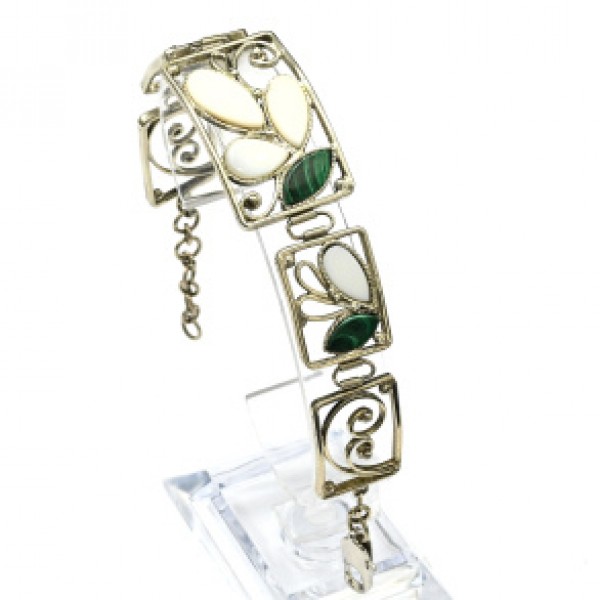 Браслет с кахолонгом и малахитом, 17,5см.