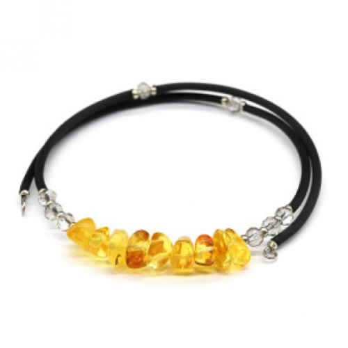 Браслет с медовым янтарем и цирконами на пружинке, 17см