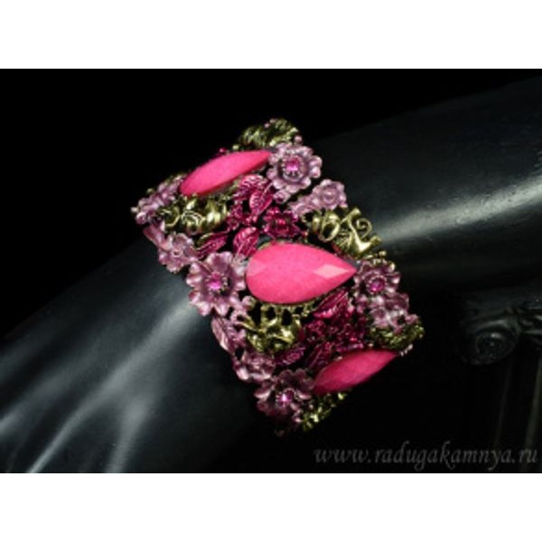 Браслет с муранским стеклом цвет розовый