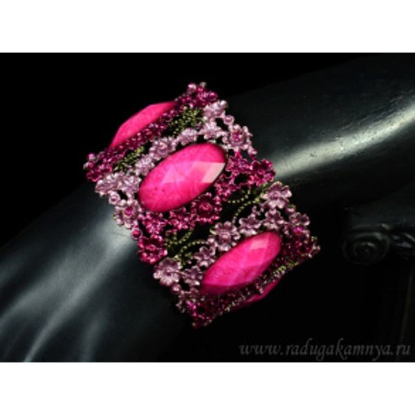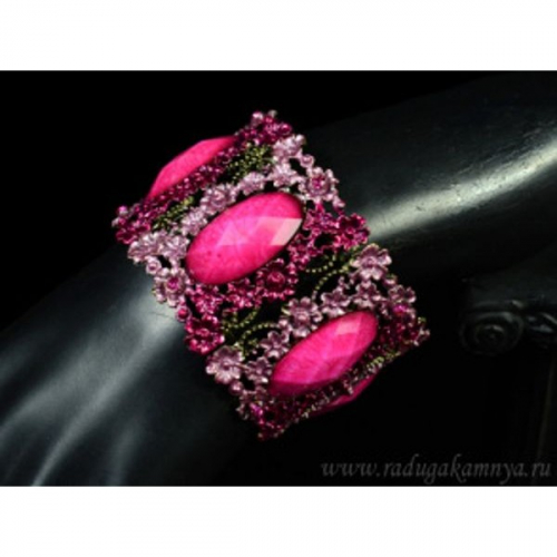 Браслет с муранским стеклом цвет розовый.