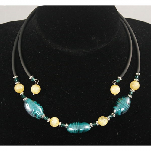 Браслет с муранским стеклом Цветок 18*18мм цвет синий (иск.)