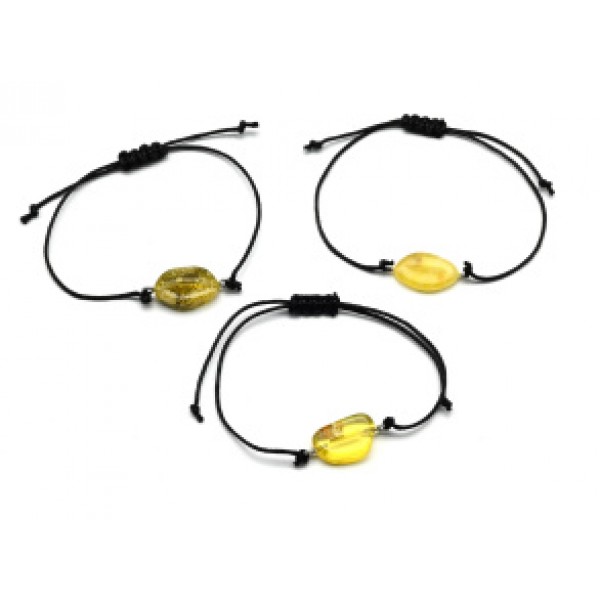 Браслет с Руной Иса из янтаря 10*17мм на шнурке цвет медово-молочный
