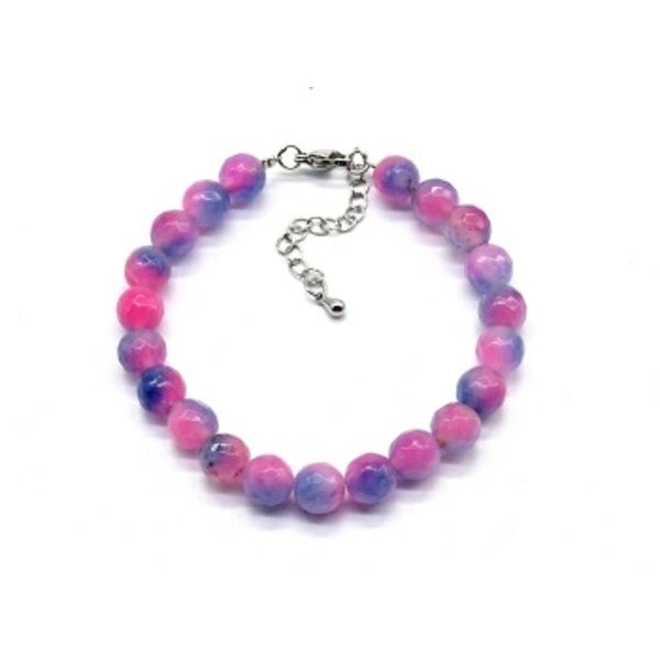 Браслет с шариками кальцита 8мм с замком, цвет турмалин, 19см