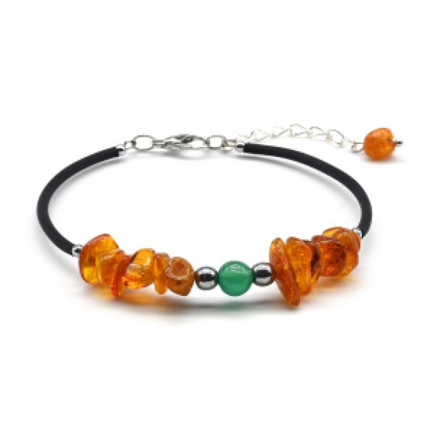 Браслет с янтарем и агатом на струне цвет коньячный, 17см.