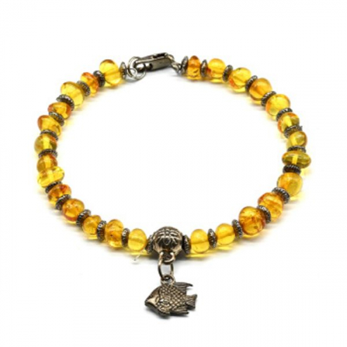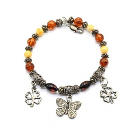 Браслет с янтарем и Кулонами шарик 6мм, 7мм цвет молочный, коньячный, 18см.