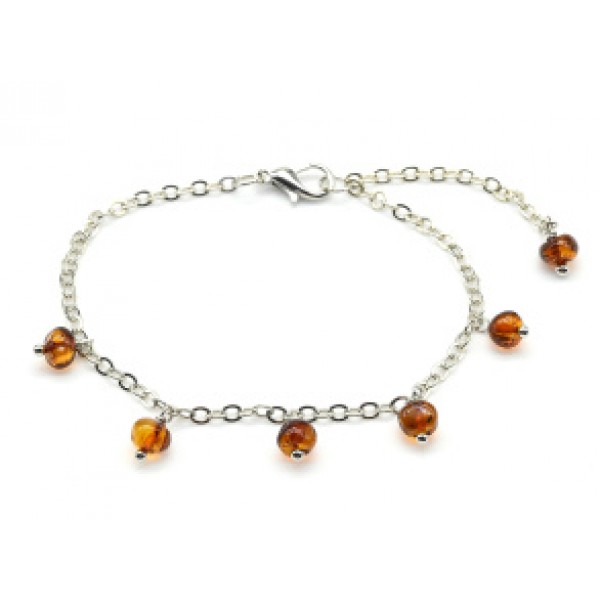 Браслет с янтарем на цепочке галтовка 5мм цвет светло-коньячный, 18см