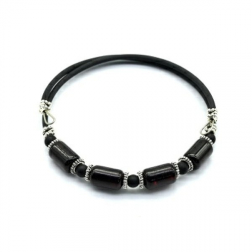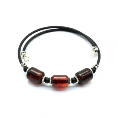 Браслет с янтарем на пружинке цилиндр 10*12мм цвет коньячный, 17см
