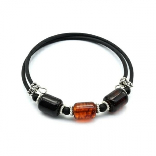 Браслет с янтарем на пружинке цилиндр 9*12мм цвет коньячный, 17см