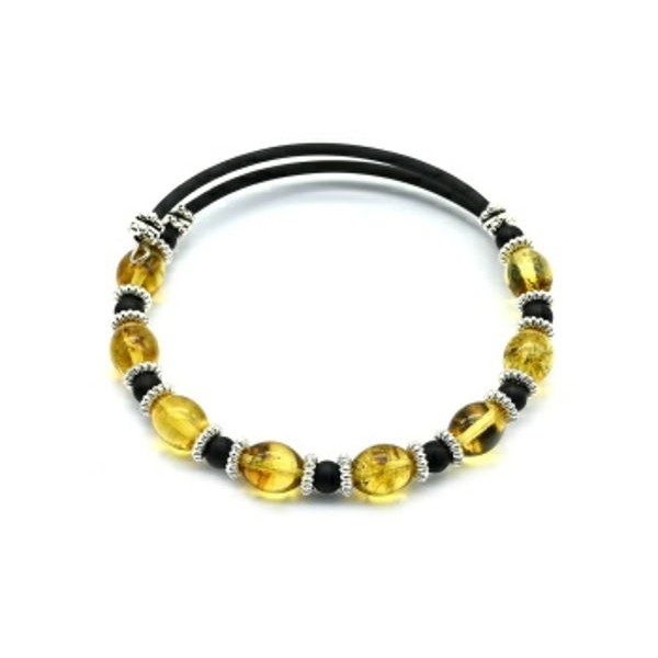 Браслет с янтарем на пружинке рис 8*10мм цвет лимонный, 17см