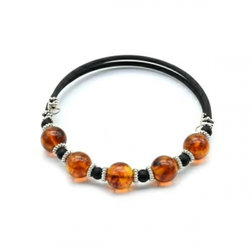 Браслет с янтарем на пружинке шарик 10мм цвет вишня темная, 17см