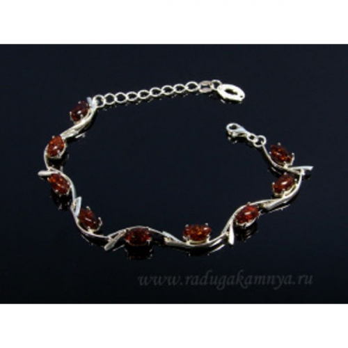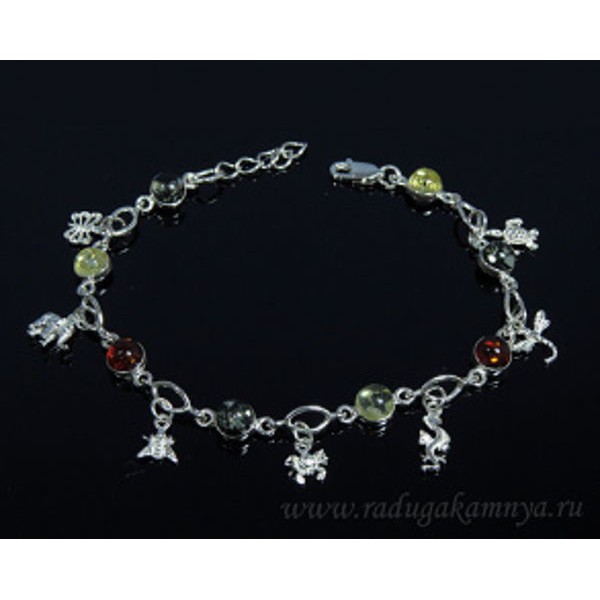 Браслет с янтарем С925 круг 6мм ассорти, 19см, 8,62гр