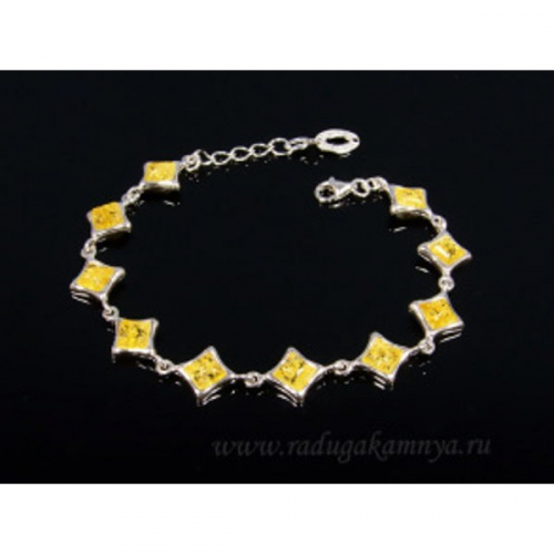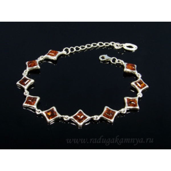 Браслет с янтарем С925 ромб 12*12мм коньячный, 19см, 11,53гр