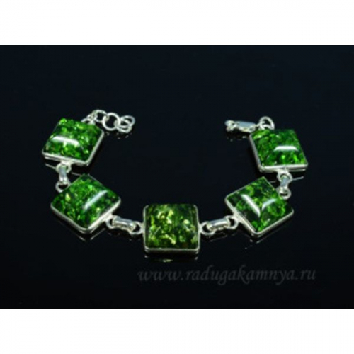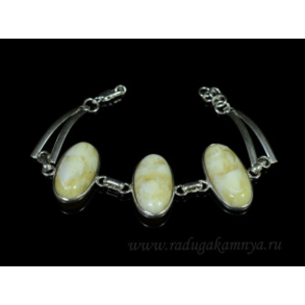 Браслет с янтарём в посеребрении 3 овала 31*16мм молочный, 20см