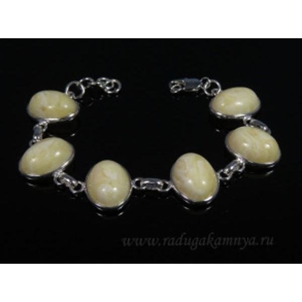 Браслет с янтарём в посеребрении 6 овалов 22*16мм молочный, 22см