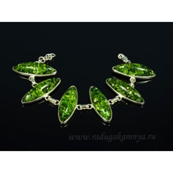 Браслет с янтарём в посеребрении 6 рисинок 40*14мм зеленый, 20см