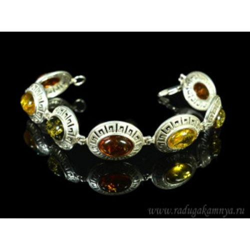 Браслет с янтарём в посеребрении "греческий" овал 18*30мм лимонный, зеленый, коньячный, 21см