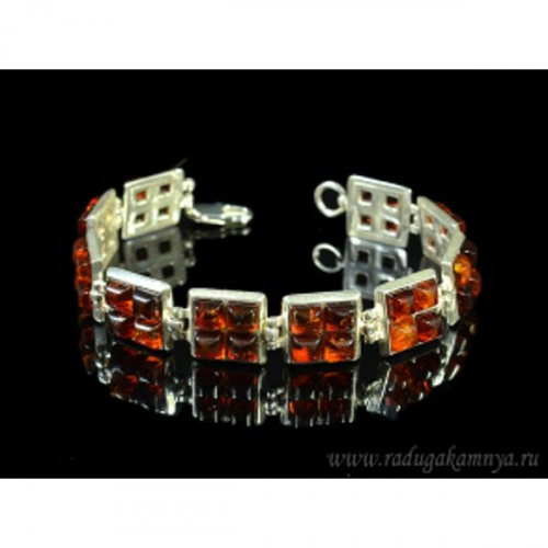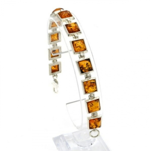 Браслет с янтарём в посеребрении квадрат 10мм коньячный, 20см
