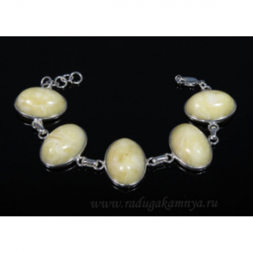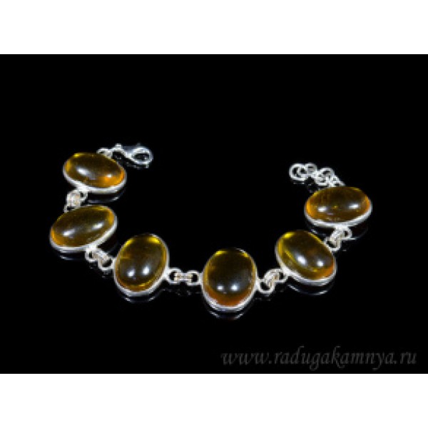 Браслет с янтарём в посеребрении овал 22*16мм медовый, 20см.