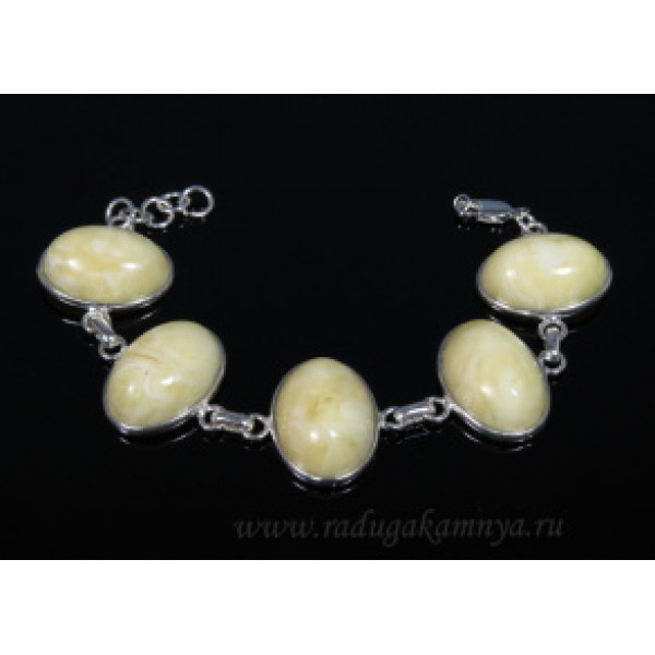 Браслет с янтарём в посеребрении овал 27*20мм молочный, 20см