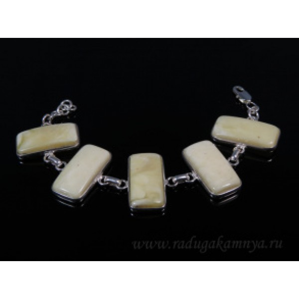 Браслет с янтарём в посеребрении прямоугольник 15*30мм молочный, 18см