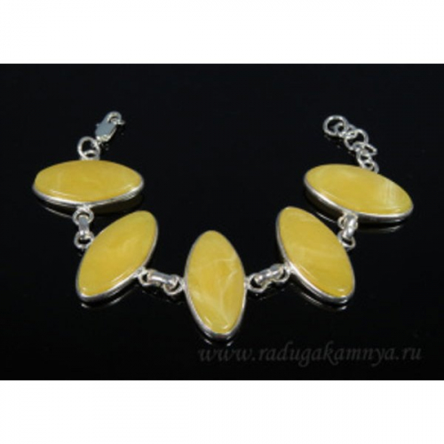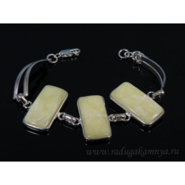 Браслет с янтарём в посеребрении прямоугольник 15*30мм молочный, 20см