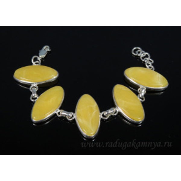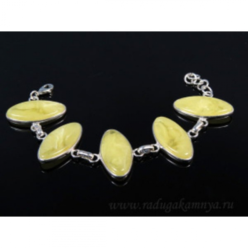 Браслет с янтарём в посеребрении рис 15*30мм медово-молочный, 18см