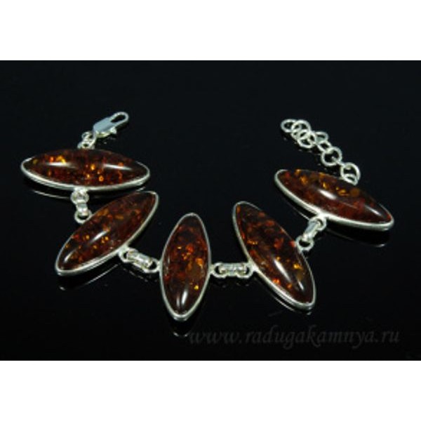 Браслет с янтарем в посеребрении рис 15*40мм коньячный, 19см