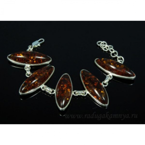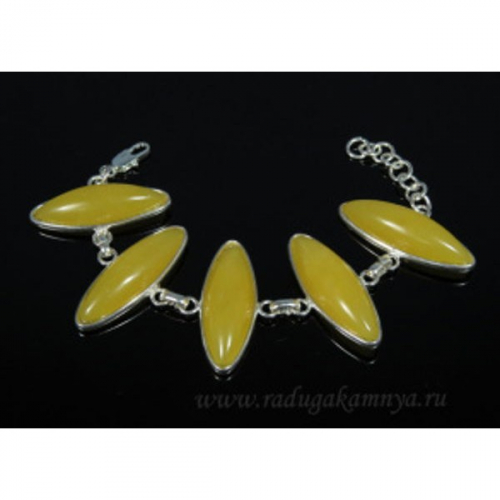 Браслет с янтарем в посеребрении рис 15*40мм медово-молочный, 19см